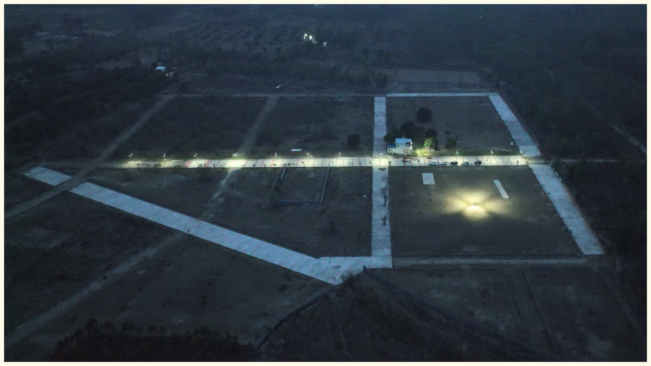 Upon entering the community, you are welcomed by a peaceful ambience marked by solar-lit streets, cleanly demarcated plots with neat short boundaries, and ongoing development activities that continuously enhance the infrastructure. Wide pathways, natural greenery, and the gentle charm of hazy morning light create an atmosphere that feels both revitalizing and deeply personal.